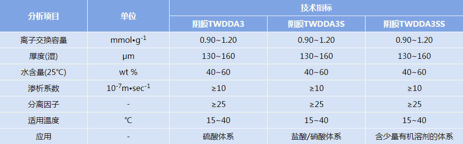 備注:上述數據均為參考值,而非離子膜的性能保證值,表格中的數據可能變更。
