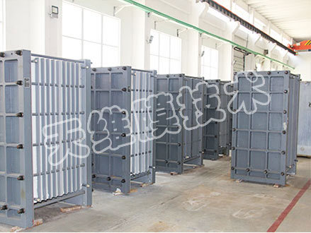 將擴散滲析陽膜、滲析室隔板以及擴散室隔板按一定順序排列起來,在兩側放置配水板并用夾緊板夾緊的分離堿的設備。
